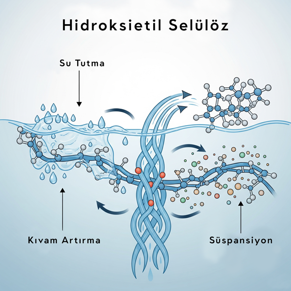 Hidroksietil selüloz, doğal selülozun kimyasal olarak değiştirilmesiyle elde edilen, suda çözünebilen ve yüksek performanslı bir polimerdir. Su tutma, kıvam artırma ve süspansiyon sağlama özellikleri sayesinde farklı sektörlerde vazgeçilmez bir katkı maddesidir.